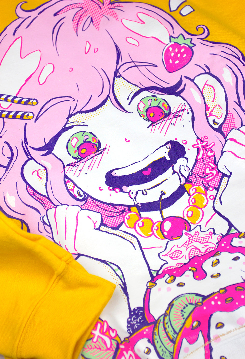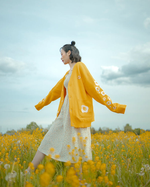 I own a t-shirt version as opposed to this, a sweater. I think the t-shirt is more becoming of its bright and free design, but I liked this product picture more... Like everything from OMOCAT, it's super high quality at a reasonable price, and her style is, of course intentionally, so beautifully condusive to apparel, which is why I have a good few of her designs. This one is just so positive and colorful, I love it. I don't have enough yellow in my wardrobe!
