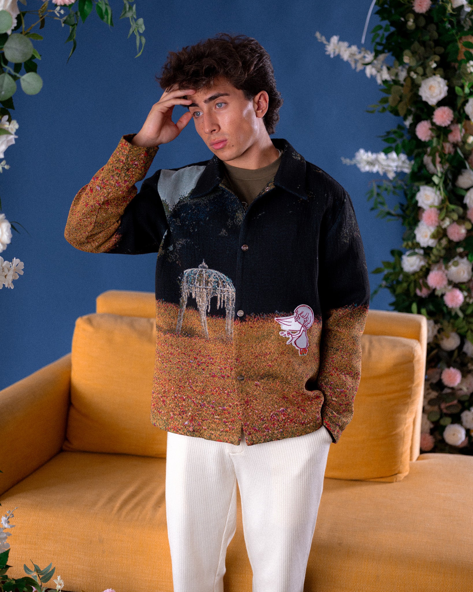 This image directs you to just the jacket in the picture, but the whole fit and so much else on shirtz.cool are so damn sexy. A lot of their line is centered around this vibrant primary colors + green palette, and it is exactly the kind of clothing that coaxes me out of depression for a couple seconds. I don't own anything from them, and it's a real shame both the bucket hat and, in my size, the sherpa fleece jacket are sold out (that fleece is such a good aesthetic that I'm missing in my life), but there's just a ton of these super original designs that I may at some point have to pick up.