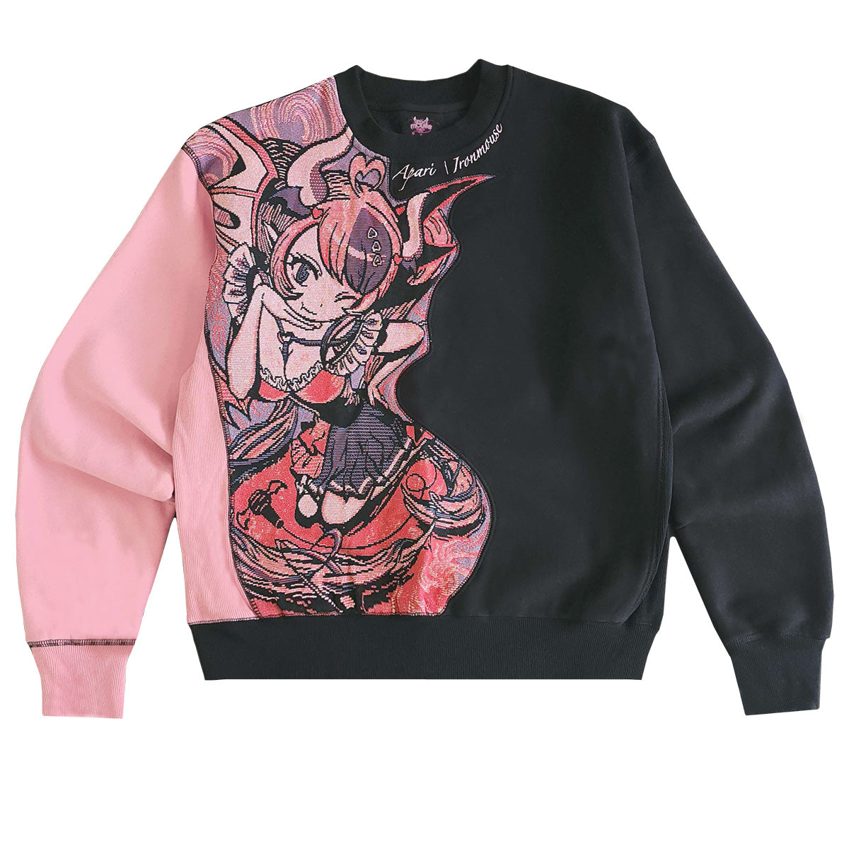 Ironmouse is such a cool content creator! With her endless wardrobe, she demonstrates her exquisite taste and patronage of talented artists, and with this piece of merch, she continued that trend. Apari is so skilled at making clothing, I'm really surprised they're not more well-known (I'd never heard of them until I did a deep dive on clothing in a similar genre to OMOCAT's). With this sweater, they really brought their all; that complex weave, whatever you call it, is just so damn hot and is deserving tratment for this awesome Ironmouse art. That being said, even though it was sold out when I first saw it, I don't know if I could've ever bought it; it's quite a statement on the cleavage/general weebage front; I know and love to death that that's how Ironmouse rolls, but I believe that clothing should be utilized to make a particular impression on passersby, and this shirt definitely can make someone harbor the poor first impressions of Ironmouse that I admittedly once had; that she's an oversexualized character born out of the annals of the idol industry. (Side rant: What I just said is definetely a problem present in the vtuber community, and it's the main reason I'm not much of a patron of it. I realize that the vast majority of vtubers love their industry, and while I do think that they should have every right to sexualize their characters, even if for monetary gain, there is some intersection with the promotion of unhealthy, unhelpful, and outdated body standards as in for example the porn industry that I'm not quite sure how to correctly unpack or critique)