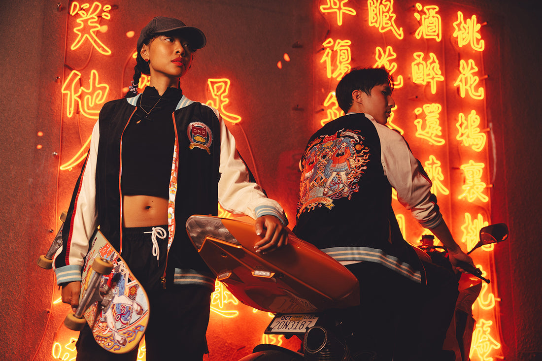 WOULDJA FUCKIN LOOK AT IT GODDAMN THAT'S A GORGEOUS BOMBER!!! I don't know why, but for some reason I think that this and this alone does perfect justice to Ed Hardy's art. Above you'll see my rant about how the Ed Hardy line doesn't do him justice but this is a definite exception. The koi capture a lot of what I love about Don Ed's Japanese work, and the cranes on the back (not shown here) are sketchy and artistic and rough and perfect - they diverge from the more classic tattoo styles and show a different facet of Ed's genius that the line largely supresses. And that hotdog palette is everything I live for holy hell it's so pretty.